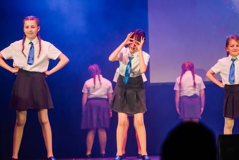 Children from Elite Performers Academy performing on stage at Beam Theatre, Hertford, to celebrate the company's 10 year anniversary.